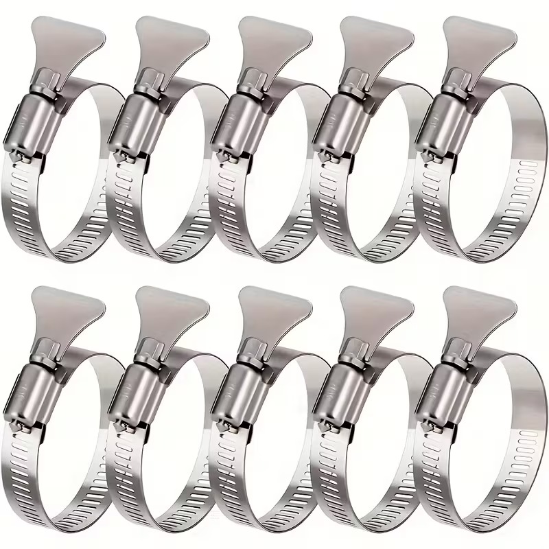 This 10-piece set of Stainless Steel Worm Gear Hose Clamps provides secure and adjustable fastening for hoses, pipes, and tubing connections. Designed for reliable sealing, these clamps ensure uniform pressure distribution to prevent leaks in plumbing, automotive, and industrial systems.